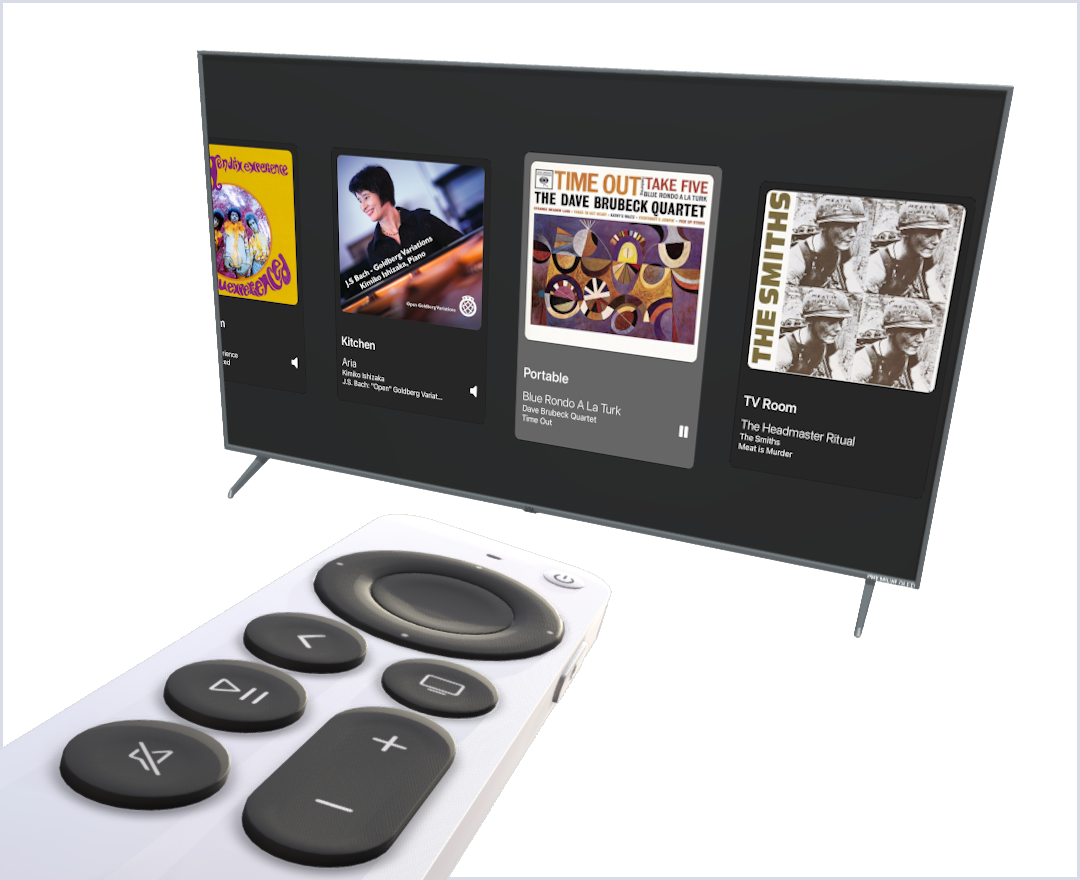 Control what is playing where with just a few swipes and clicks on your Apple remote. Join rooms, change shuffle modes, and adjust the volume of every device in your system.
